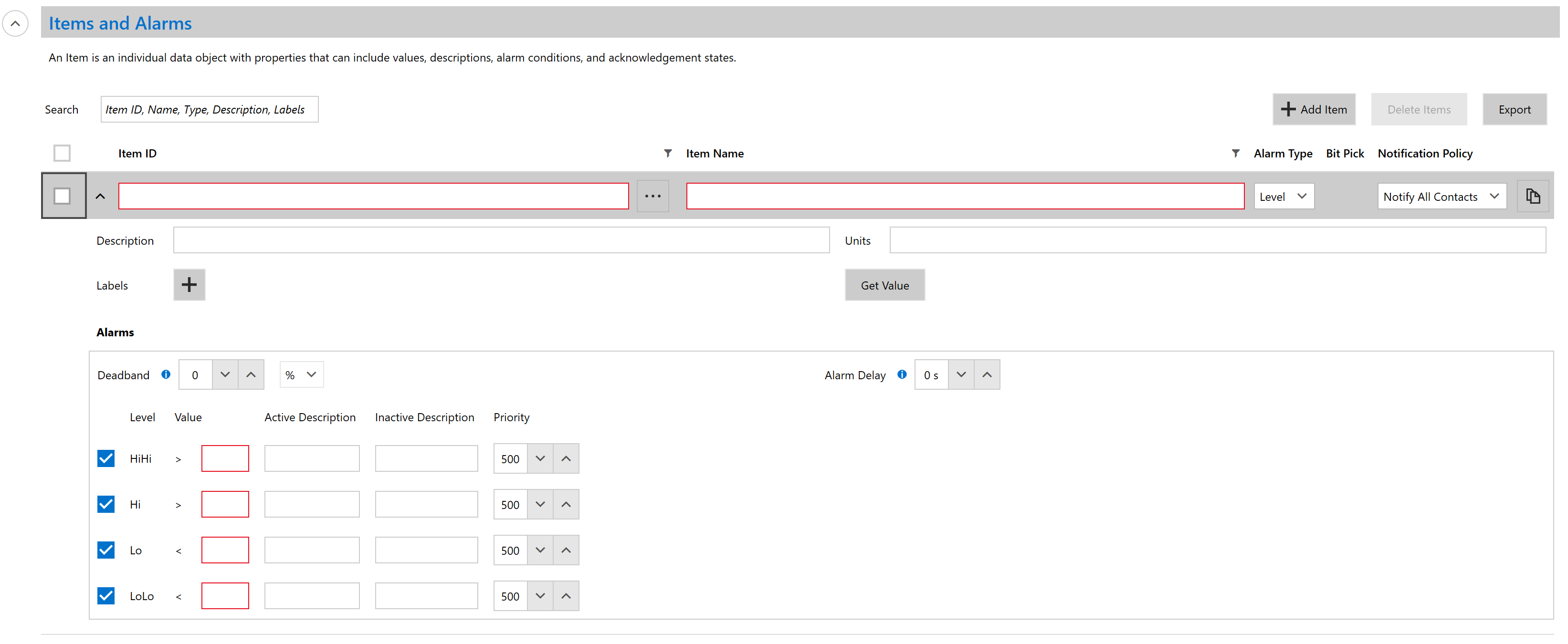 It's very tedious to add alarm condition to items, especially with OPC DA. Allow alarm database import and export would make this process much much easier. A similar alternative is to allow copy and paste from Excel like some other apps (SubNET Station).